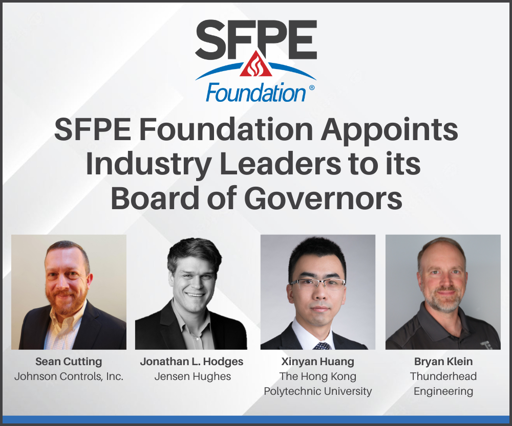 The SFPE Foundation Appoints Sean Cutting, Jonathan L. Hodges, Xinyan Huang, and Bryan Klein to its Board of Governors