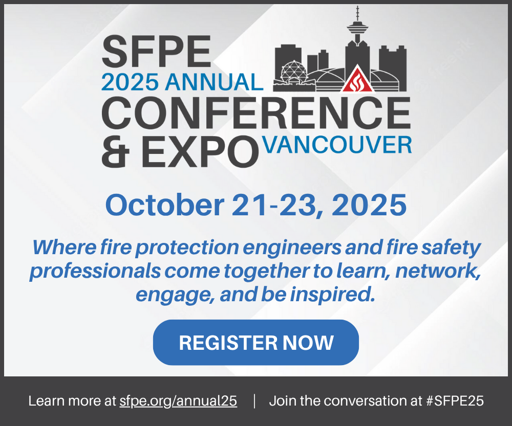 June 12, 2025: GAITHERSBURG, Maryland – The Society of Fire Protection Engineers (SFPE), the world’s leading professional society for fire protection and fire safety engineering, announces the opening of registration for the SFPE Annual Conference & Expo. Held at The Westin Bayshore in Vancouver, British Columbia, Canada, from October 21-23, the SFPE Conference & Expo is the place where fire protection engineers and fire safety professionals come together to learn, network, engage, and be inspired.