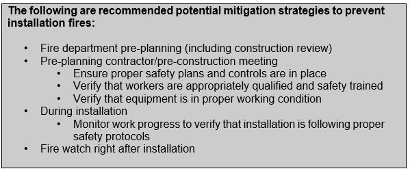 More emphasis within the codes should focus on ensuring the system is installed safely, with a consideration for fire safety. As code changes are being considered, input should be sought from fire protection engineers, insurance underwriters, brokers, roof consultants, roof manufacturers, roof specifiers and roof inspectors.