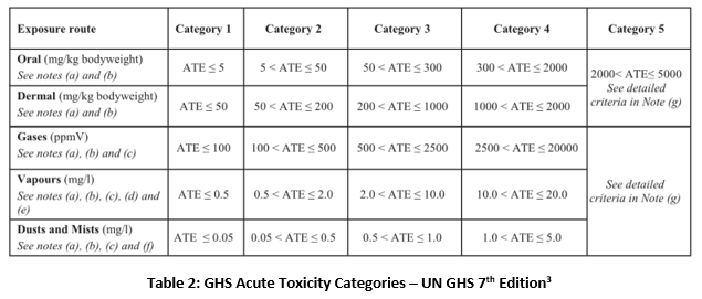 The IFC utilizes classifications of Toxic and Highly Toxic whereas the GHS classifications are categorized as 1-5. These categories can be compared to the IFC definitions to assist in determining the level of toxicity in accordance with the IFC.