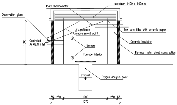 Figure 1: Cross section of the furnace test setup.