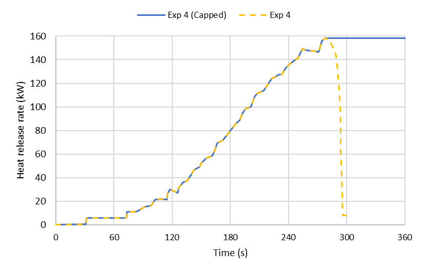 Figure 2: Example of capped HRR curve (Experiment 4).