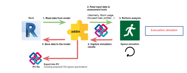 Figure 1 - Data loop linking Revit to the evacuation simulator (Pathfinder)