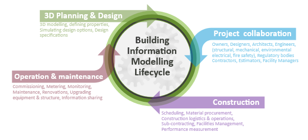 Figure 1. The BIM process lifecycle, shown as a schematic diagram.