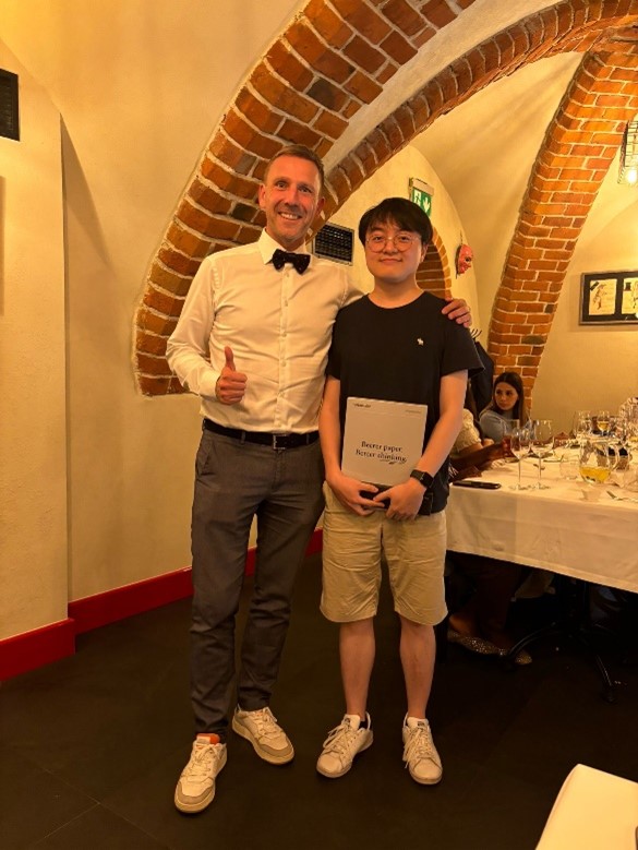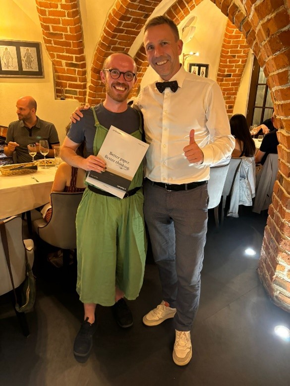 Figure 5. The Summer School Lecturer’s Choice poster winner Wenxuan Wu (left) and Participants’ Choice Poster Award winner Matthew Bonner (right) were both congratulated by Grunde Jomaas.
