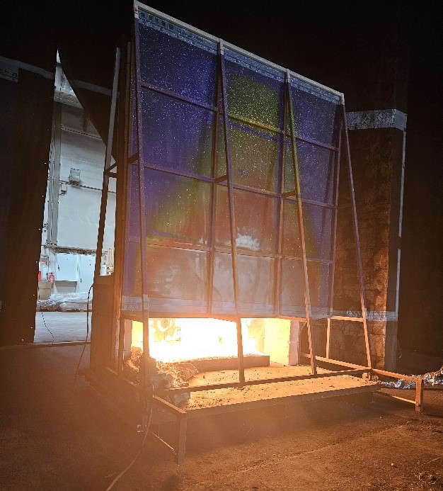 Figure 6. Ventilated façade fire and smoke control in corridor demonstrations at ITB Fire Testing Laboratory.