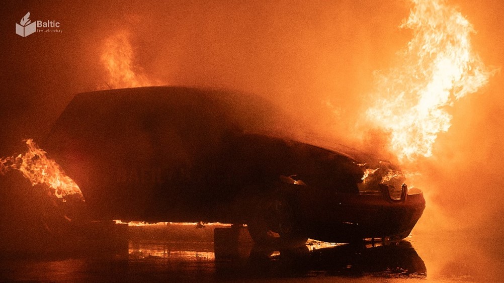Figure 8. Car burning demonstration at Baltic Fire Laboratory with suppression system – water mist.