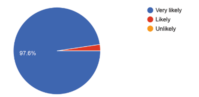 Figure 9. Exit questionnaire feedback. Left) How would you rate your overall experience at the Summer School? Right) How likely are you to recommend this Summer School to a friend or colleague?