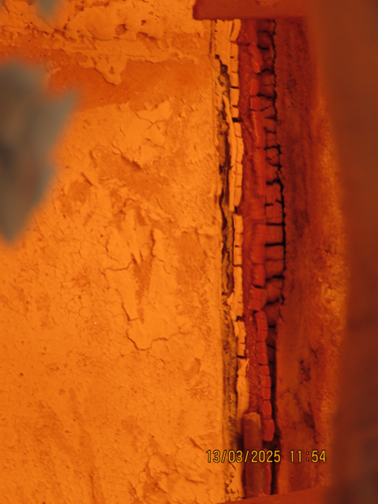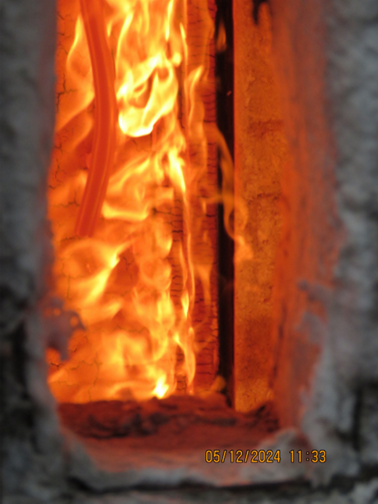 In general, the assessment criteria are based on the performance of a fire door on the unexposed side of the fire test. This includes the above-mentioned integrity and insulation criteria, which assess the ability of the fire door to prevent fire spread and to serve as a “fire safe” division between two building compartments. Figure 6 displays photos of the exposed surface (fire side) of a typical non-combustible and combustible fire door. These photos were taken after the skin burned off, and only the core being exposed to the fire. These photos clearly indicate the difference between the flames and fire behaviour of each door on the exposed side of the furnace.