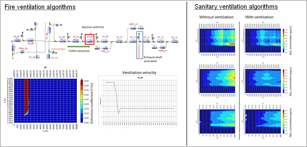 For sanitary ventilation, referring to the control of pollutants generated by day-to-day traffic, the model helped identify equipment configurations capable of maintaining acceptable air quality while optimizing energy use. By exploring many combinations of jet fans and shafts, the model clarified where ventilation is truly needed and where it can be reduced without compromising environmental conditions.