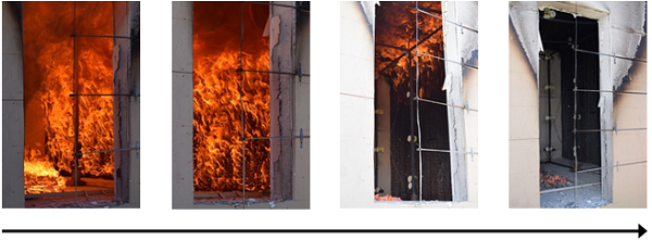 Figure: (a) test at the University of Edinburgh where continued burning was observed;11 and (b) test at the University of Queensland where auto-extinction was observed13