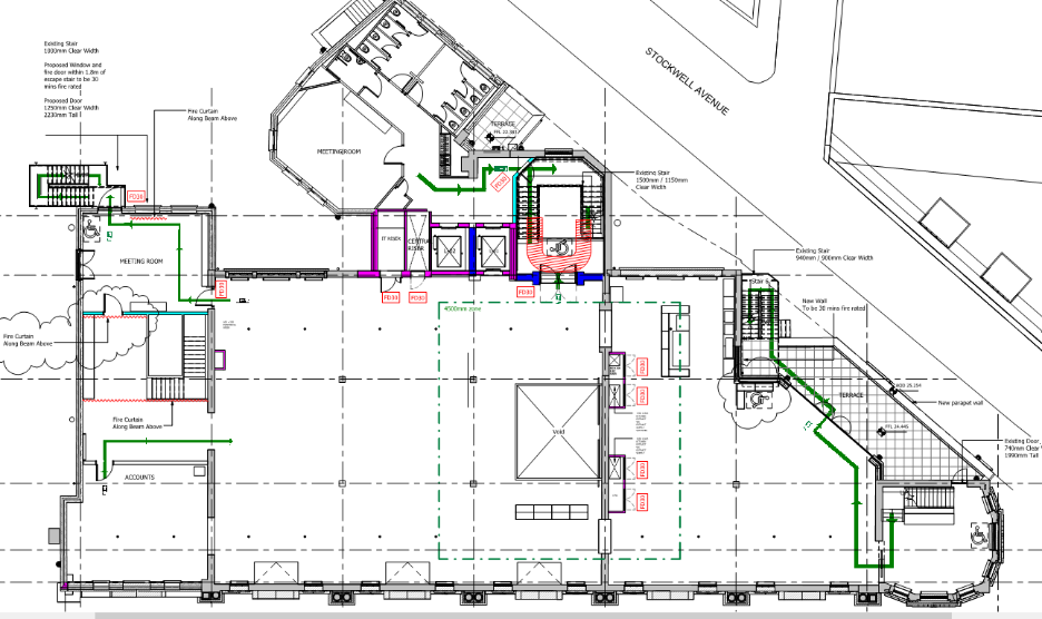 To fully understand how the existing building would behave in the event of a fire, a site visit was arranged to review the active and passive fire safety measures.