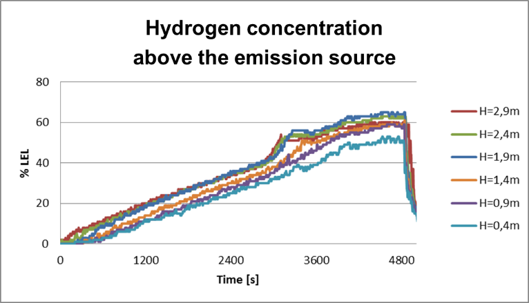 Figure 4: Hydrogen concentration above the emission source.